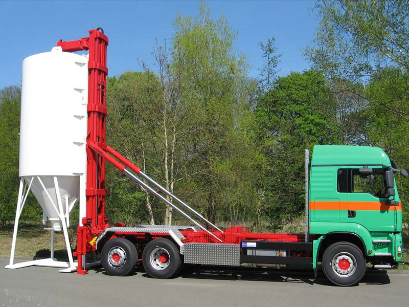 The COMBILIFT system can Pick up, Set down, Put down and Tilt swap bodies and exchangeable silos of different standards. Thus, we offer transport solutions for applications such as disposal, construction, plastics, flours/powders, food chemistry, etc.